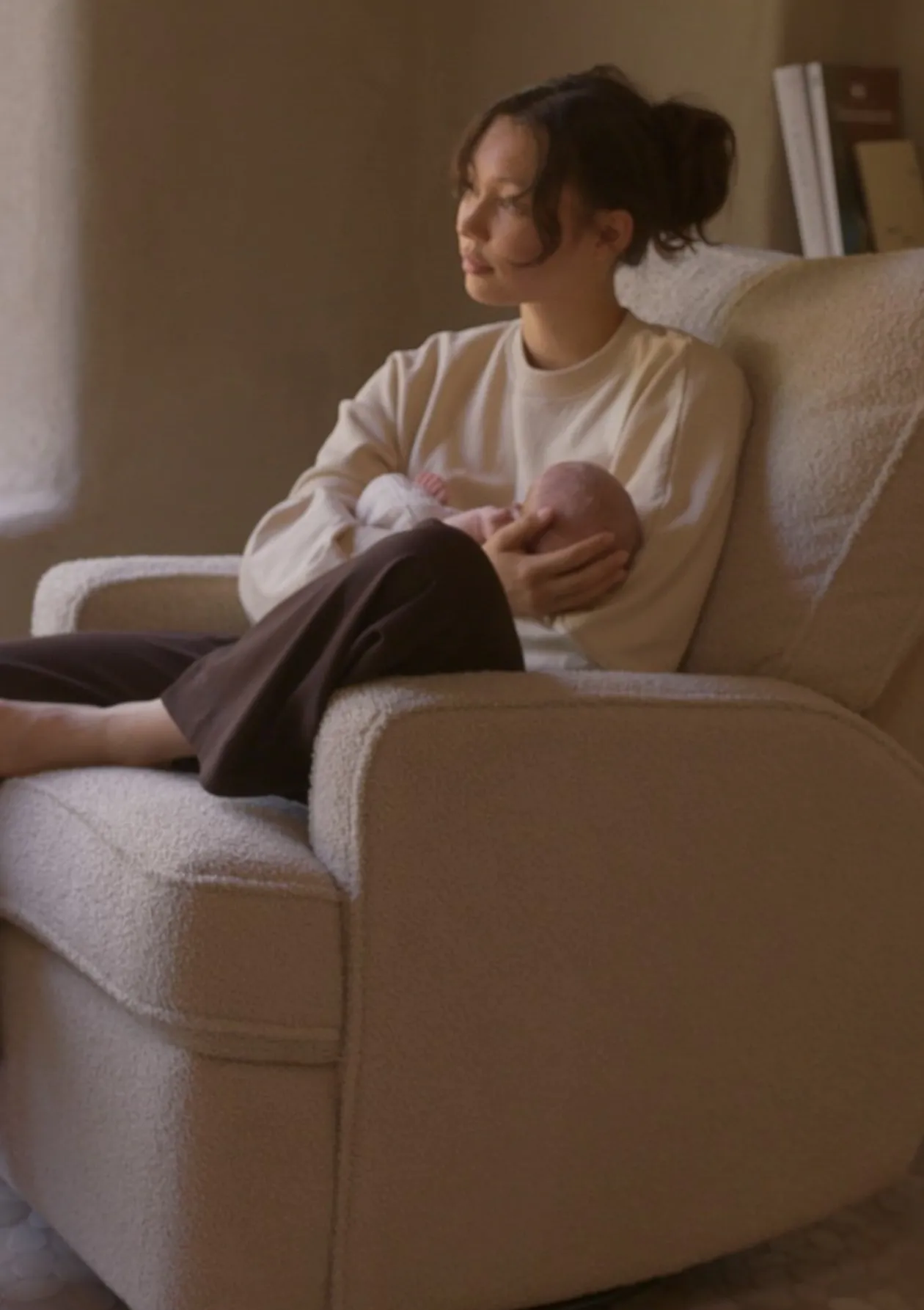 Der weiche, angenehm griffige Bezug und die großzügige Polsterung schenken jedem Moment ein Gefühl von Ruhe, Geborgenheit und purem Wohlbefinden – ganz gleich, ob mit Baby im Arm oder bei einer kleinen Auszeit nur für dich.