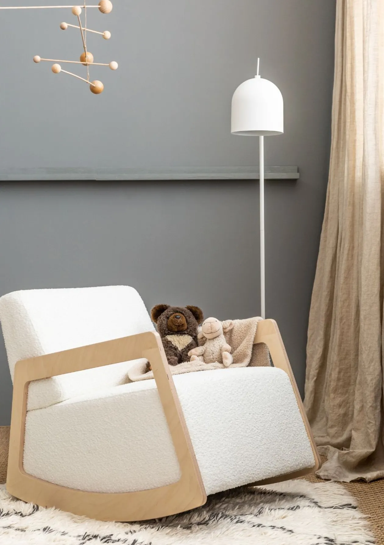 Dieser stylische Schaukelsessel kommt vom niederländischen Label RAFA-KIDS und stellt noch dazu ein optisches Highlight für dein Zuhause dar. Das Modell überzeugt in schlicht-eleganter Aufmachung, bei der ein Gestell aus extra stabilem finnischem Birkensperrholz mit einem bequemen Kaltschaum-Polster – bezogen mit geschmeidigem Bouclé – kombiniert wurde. Die erstklassige Federung optimiert den Sitzkomfort und die hochwertige Verarbeitung macht das zeitlose Möbelstück zu einem langlebigen Begleiter in eurem Zuhause.