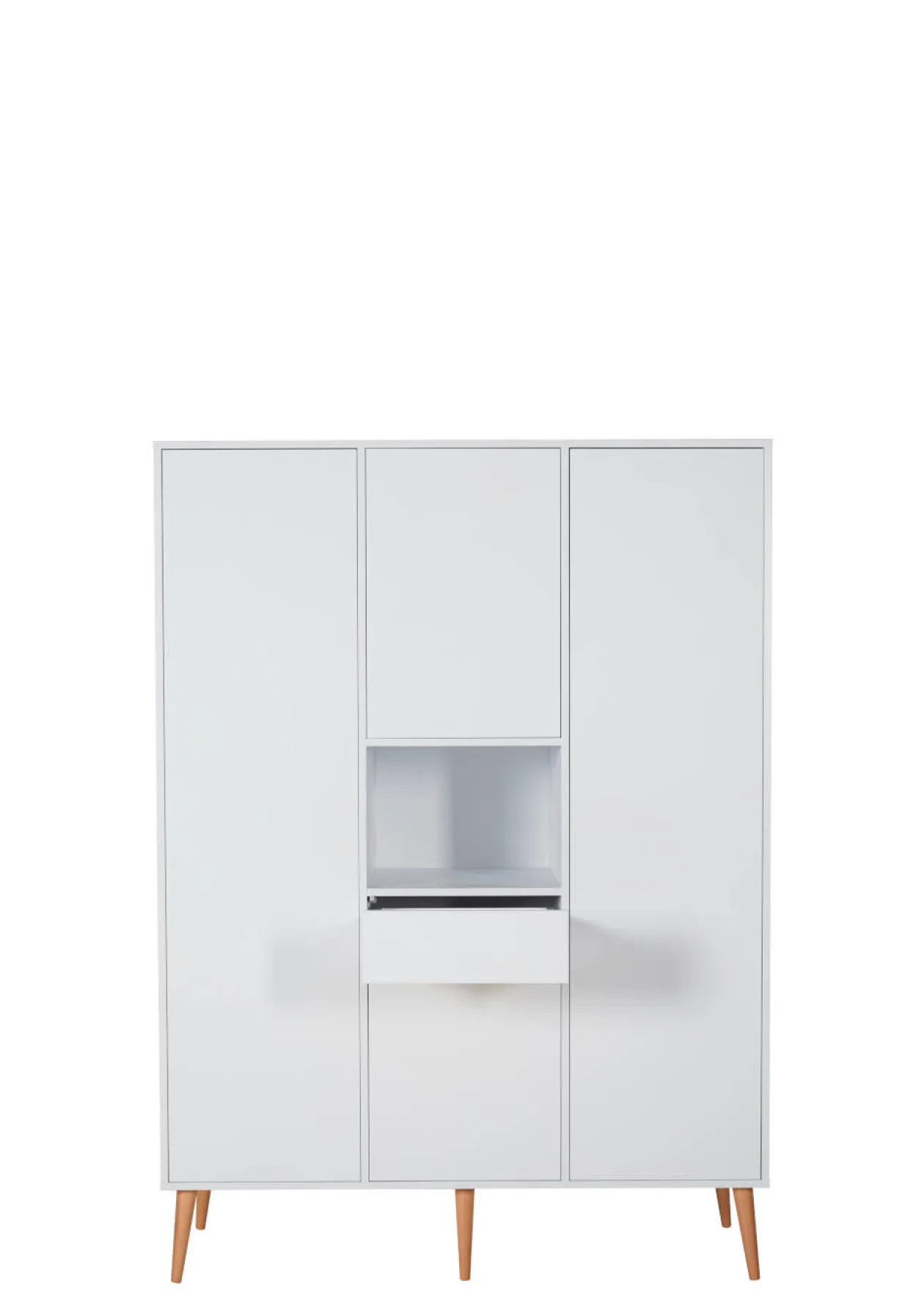 - Sieben variable Einlegeböden, zwei Kleiderstangen und ein offenes Fach