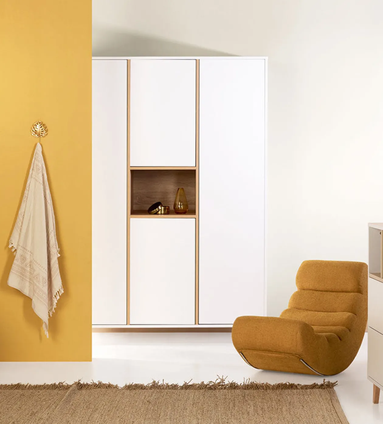 Kleidung, Spielzeug, Bastelsachen: In einem Kinderzimmer gibt es immer viel zu verstauen! Der große Schrank der belgischen Marke QUAX bietet mit zahlreichen Fächern genügend Platz für alles, was man im Alltag mit Kind braucht. So ist das Baby- oder Kinderzimmer blitzschnell wieder aufgeräumt. Auch mit drei Türen erhältlich!