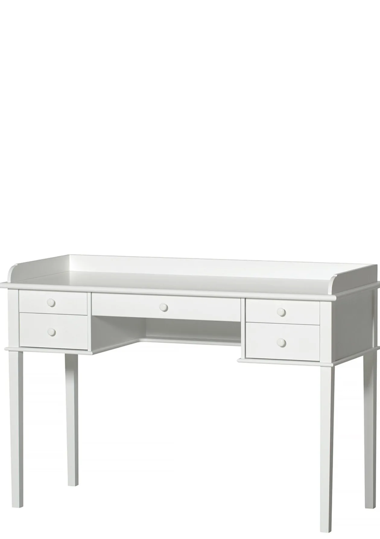 Ein stilechter Klassiker für’s Kinder- und Jugendzimmer! Dieser Schreibtisch wächst dank austauschbarer Beine mit und ist so ein lebenslanger Begleiter. Die fünf Schubladen bieten genug Stauraum für Buntstifte, Tagebücher und alles, was kleine und größere Kreative sonst noch brauchen.