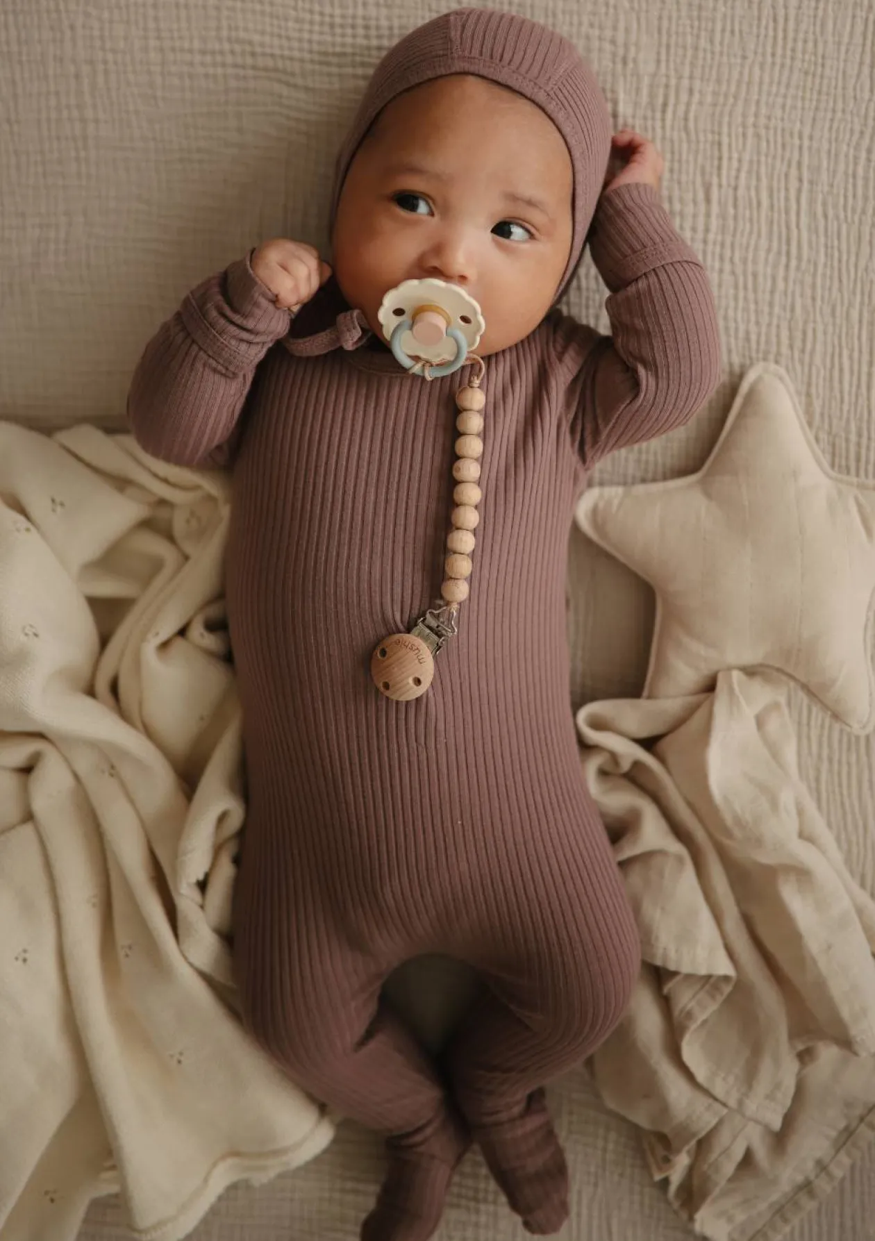 Diese schlicht-elegante Schnullerkette in Holz-Optik vom amerikanischen Label MUSHIE ist nicht nur ein unheimlich nützliches Baby-Accessoire, sondern auch ein echter Hingucker. Gefertigt wurde die hübsche Perlen-Kette mit dem praktischen Clip aus hochwertigen Silikon, selbstverständlich lebensmittelecht und frei von Schadstoffen.