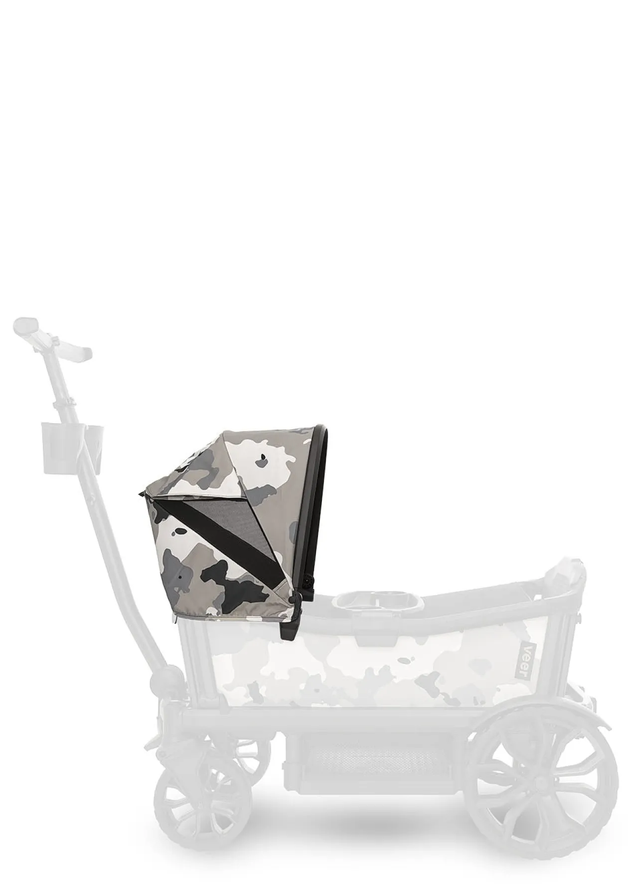 Das Sonnendach von VEER schützt nicht nur vor Sonne, sondern auch vor Wind und leichtem Regen. Es lässt sich sehr einfach am Cruiser anbringen und auf beiden Seiten flexibel montieren. Pro Cruiser lassen sich sogar bis zu zwei Sonnendächer anbringen – eins über jeden Sitz.