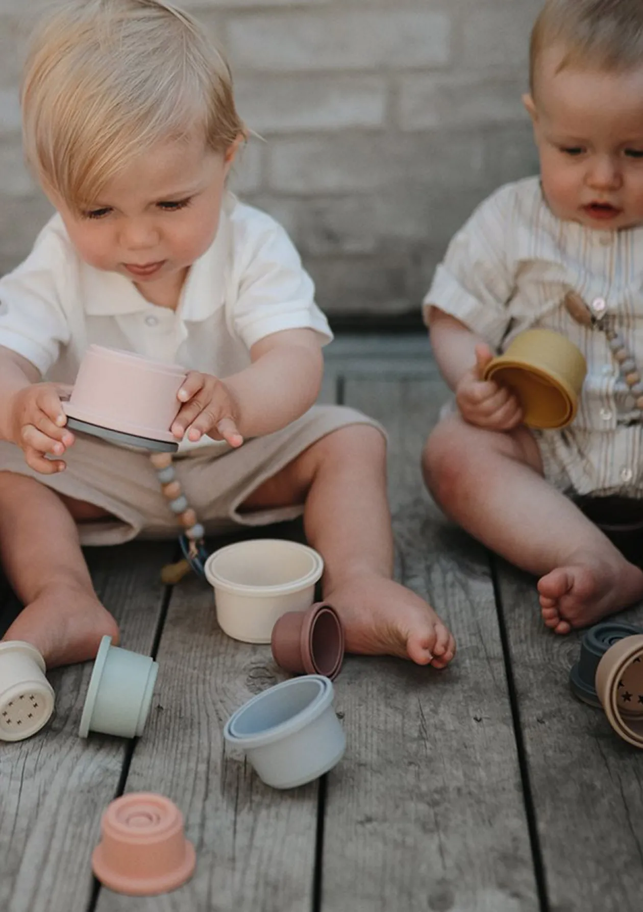Die liebevoll gestalteten Stapelbecher des dänischen Labels MUSHIE bieten nicht nur stundenlangen Spielspaß, sondern fördern ganz nebenbei auch die Feinmotorik, Hand-Auge-Koordination und das logische Denken deines Kindes. In sanften Farben passen sie perfekt ins Kinderzimmer – und sind ebenso vielseitig draußen im Garten, am Strand oder in der Badewanne einsetzbar.