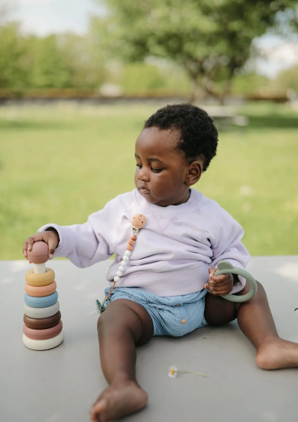 Der zauberhafte Stapelturm aus Ringen des dänischen Herstellers MUSHIE erfüllt dieses Motto in vollen Zügen! Neben dem Spielspaß, den das Stecken mit sich bringt, lernt dein Kind feinmotorische Bewegungen kennen und schult damit Koordination und Denkprozesse! In hübschen Farben passen sich die Ringe perfekt in jedes Kinderzimmer ein, können jedoch auch als Spielzeug im Garten oder in der Badewanne genutzt werden.