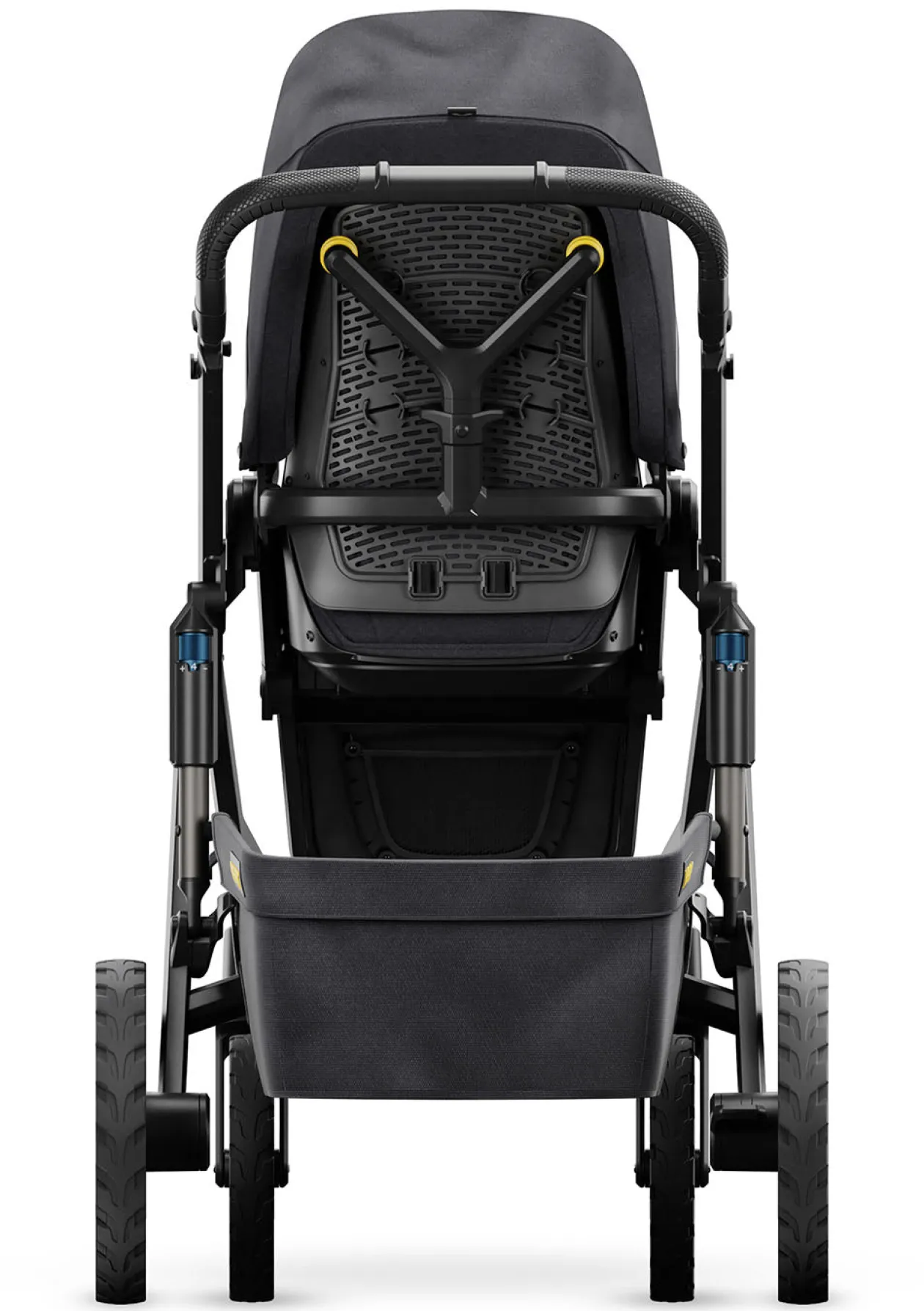 Der komfortable Switchback Sitz lässt sich mit nur einem Klick sicher auf dem Gestell montieren. Für extra viel Komfort sorgen die weichen, pflegeleichten Textilien, die stoßabsorbierenden Dämpfer, ein Sonnenschutzdach mit Sichtfenster und verstellbare Lehnen- und Fußstütze Positionen. Und sollte auf eurem Ausflug mal kein Kinderstuhl im Restaurant oder bei Freunden vorhanden sein, könnt ihr den Sitz einfach abnehmen und, dank der integrierten Gurte, auf einem Stuhl als Sitzerhöhung nutzen.