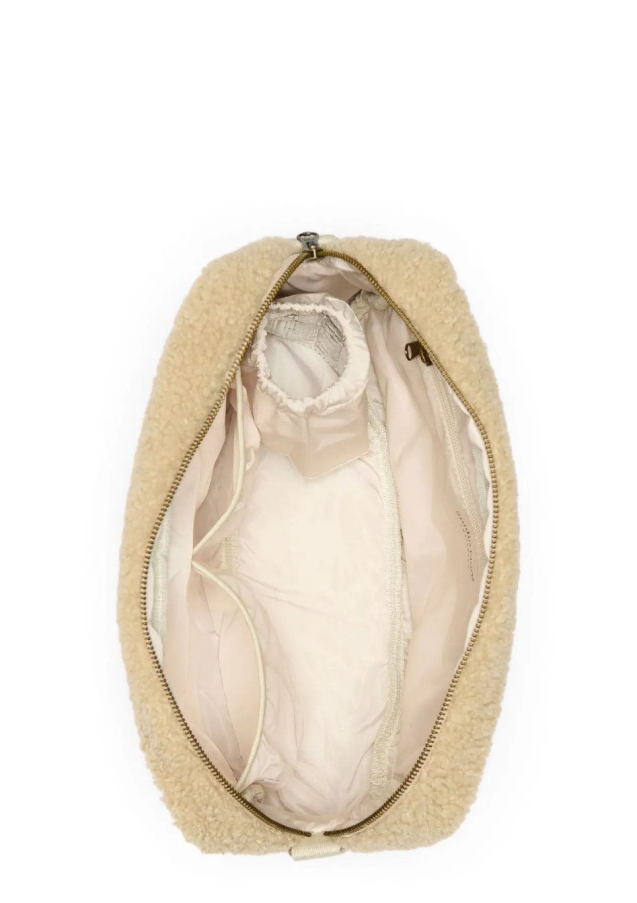 Praktisch und kompakt: der STUDIO NOOS Kinderwagen-Organizer mit angesagter Teddyplüsch-Oberfläche