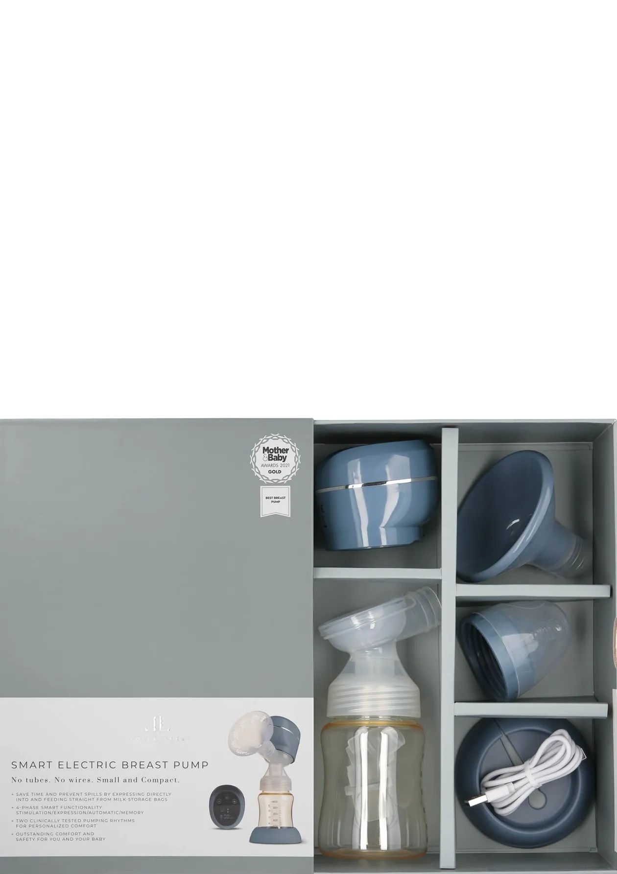 - Milchpumpe inklusive Ladekabel, Brustaufsatz und Flaschenaufsatz