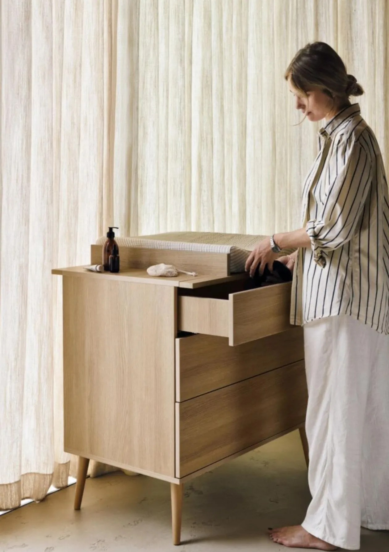 Funktional und absolut zeitlos: Diese elegante Kommode aus der Flow-Kollektion von QUAX bietet mit ihren großen Schubladen ausreichend Platz für alles, was ordentlich verstaut und schnell zur Hand sein soll. Optional ist das hochwertige Möbel mit einem praktischen Wickelaufsatz für die Nutzung als großzügige Wickelkommode ab Geburt erhältlich. Selbstverständlich lässt sich der Aufsatz rückstandslos wieder entfernen, so dass euch die Kommode über viele Jahre Freude bereitet.