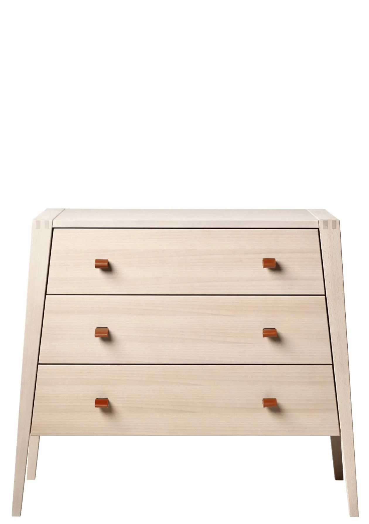Drei geräumige Schubladen mit Soft-Close-Funktion bieten reichlich Platz für Kleidung, Spielsachen und andere Utensilien. Dank der weichen Ledergriffe in kindgerechter Höhe können selbst die Kleinsten die Schubladen leicht öffnen und schließen – perfekt, um die Selbstständigkeit zu fördern. Die durchdachte Höhe macht die Kommode außerdem ideal, um sie mit dem optional erhältlichen Wickelaufsatz zu kombinieren und als Wickelplatz zu nutzen.