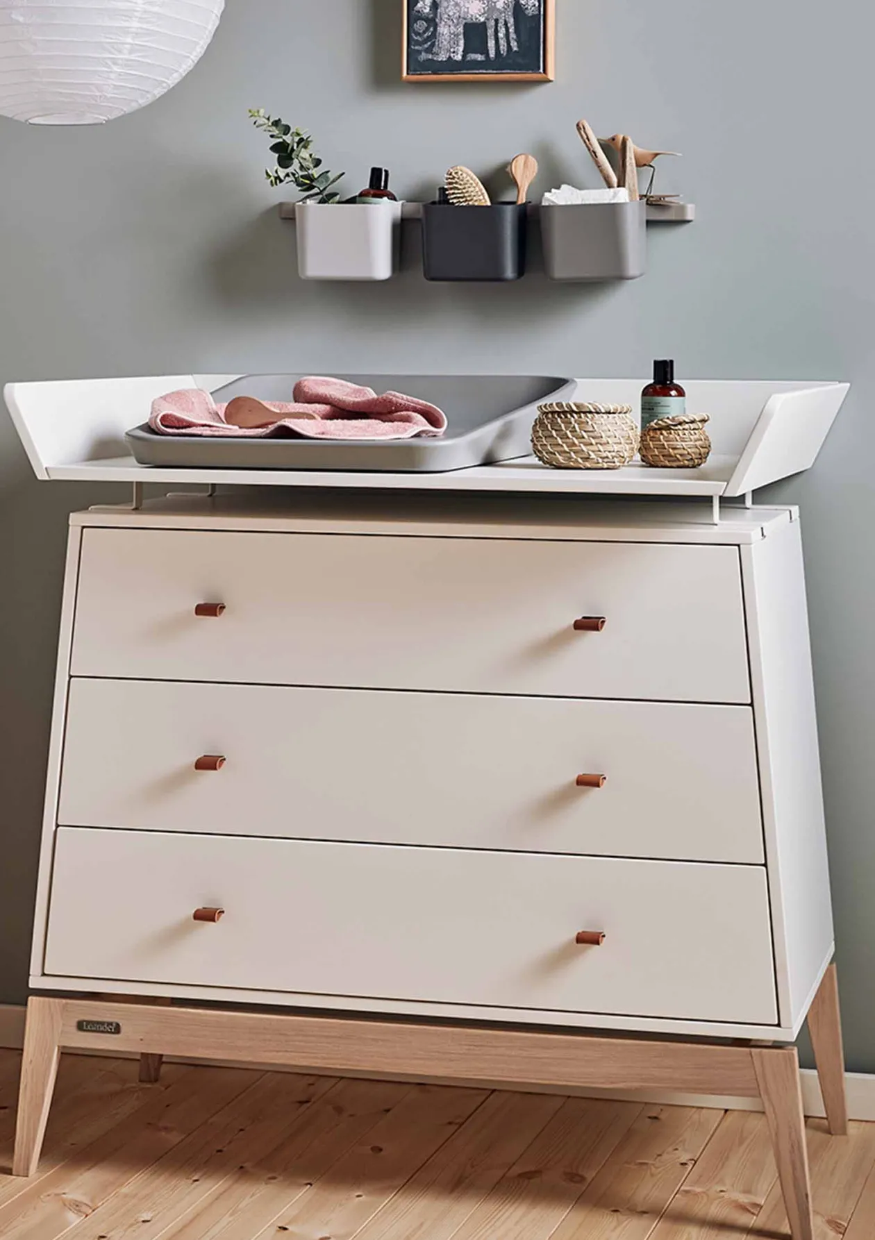 Pflegen, Spielen, Kuscheln, Kennenlernen: Der Wickeltisch ist so viel mehr als ein Ort zum Windeln wechseln! Mit dem praktischen Wickelaufsatz verwandelt sich die Luna Kommode von LEANDER in eine Wickelkommode. Dabei bietet der Aufsatz extra viel Platz: Neben der Wickelauflage sind so Pflegeutensilien, Windeln und Wechselsachen immer griffbereit. Besonders praktisch: Der Aufsatz wird ohne Bohren blitzschnell befestigt und hinterlässt keine Spuren auf der Kommode!