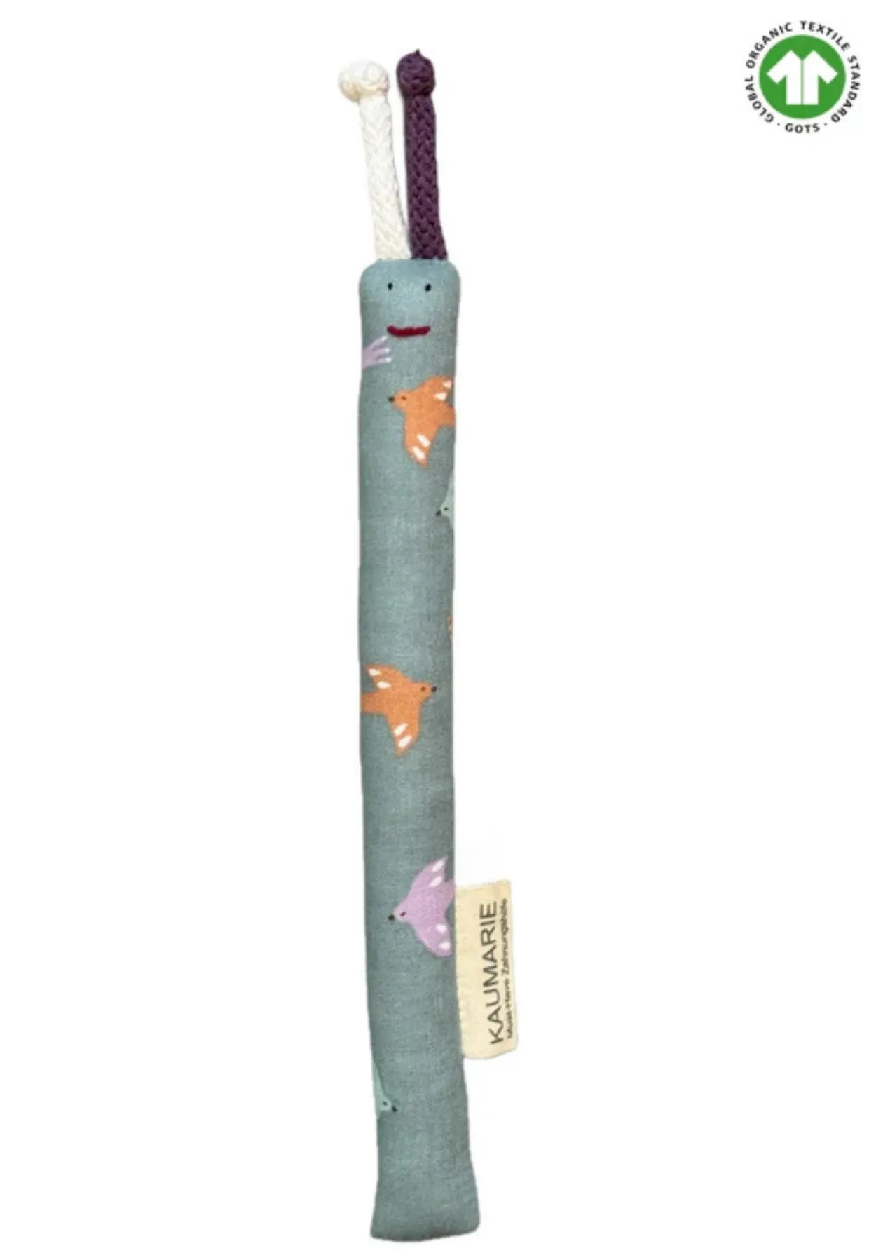 Mehr als nur ein hübsches Accessoire: Die Bio-Kaumarie ist eine sanfte Zahnungshilfe, ein erstes Spielzeug und ein liebevoll gestaltetes Geschenk zur Geburt. Babys können auf der weichen Stoffstange nach Herzenslust kauen und dabei wohltuenden Gegendruck erzeugen, der spürbar die Beschwerden beim Zahnen lindert – ganz ohne Kunststoff oder Gel. Der Stoff besteht aus 100% GOTS-zertifizierter Bio-Baumwolle und ist damit absolut unbedenklich – ideal für die sensible Babyhaut und zum ausgiebigen Nuckeln. Die Bio-Kaumarie ist nicht nur weich und federleicht, sondern auch fest genug, um die Hand-Mund-Koordination gezielt zu fördern. Bereits ab den ersten Lebenswochen eignet sich die Stoffstange perfekt zum Greifen lernen, Entdecken und Trösten. Ihr saugfähiges Material lädt zum Nuckeln ein, ohne zu reizen oder zu belasten. Ob als Geschenk zur Geburt oder Alltagshelfer beim Zahnen – die Bio-Kaumarie ist ein echtes Must-have für junge Familien.