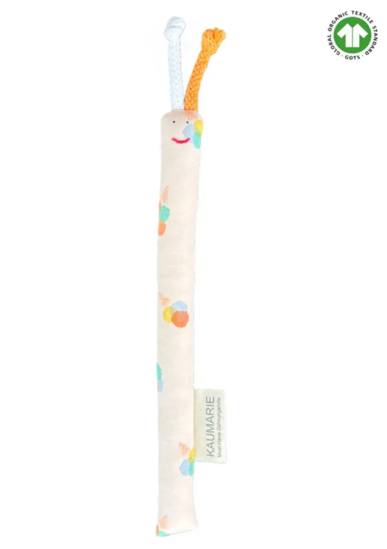 Mehr als nur ein hübsches Accessoire: Die Bio-Kaumarie ist eine sanfte Zahnungshilfe, ein erstes Spielzeug und ein liebevoll gestaltetes Geschenk zur Geburt. Babys können auf der weichen Stoffstange nach Herzenslust kauen und dabei wohltuenden Gegendruck erzeugen, der spürbar die Beschwerden beim Zahnen lindert – ganz ohne Kunststoff oder Gel. Der Stoff besteht aus 100% GOTS-zertifizierter Bio-Baumwolle und ist damit absolut unbedenklich – ideal für die sensible Babyhaut und zum ausgiebigen Nuckeln. Die Bio-Kaumarie ist nicht nur weich und federleicht, sondern auch fest genug, um die Hand-Mund-Koordination gezielt zu fördern. Bereits ab den ersten Lebenswochen eignet sich die Stoffstange perfekt zum Greifen lernen, Entdecken und Trösten. Ihr saugfähiges Material lädt zum Nuckeln ein, ohne zu reizen oder zu belasten. Ob als Geschenk zur Geburt oder Alltagshelfer beim Zahnen – die Bio-Kaumarie ist ein echtes Must-have für junge Familien.